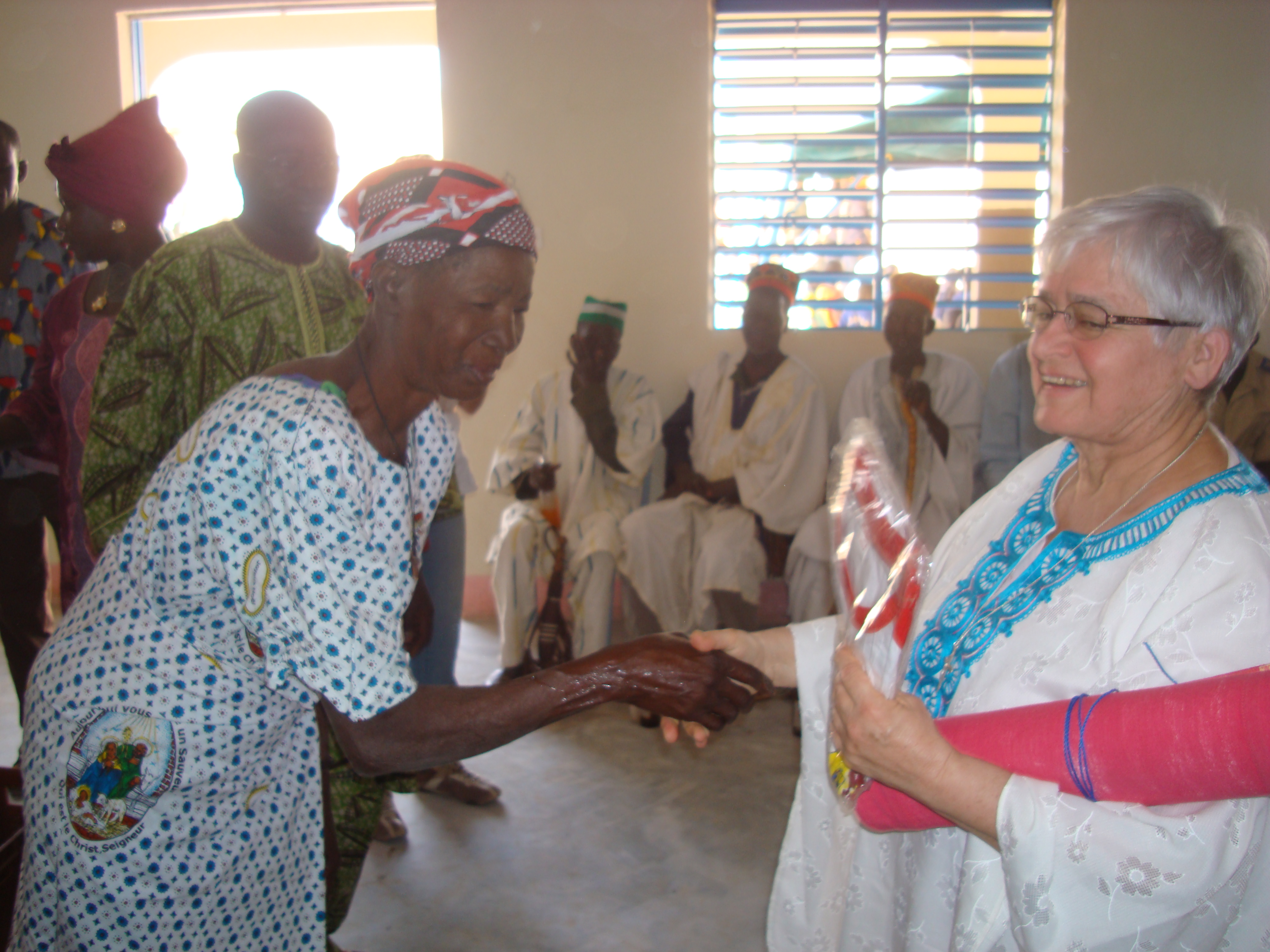 Un accueil joyeux, tout en musique et en danse, des gens modestes, pauvres, mais heureux, heureux de « vivre » : les jeunes musiciens avaient remis leur costume traditionnel, les enfants en blouse d’école bordaient la route qui traversait le village, la population dans ses couleurs bariolées frappaient des mains et les délégués des différents secteurs, après les discours d’accueil, ont souligné leurs besoins et leurs attentes…